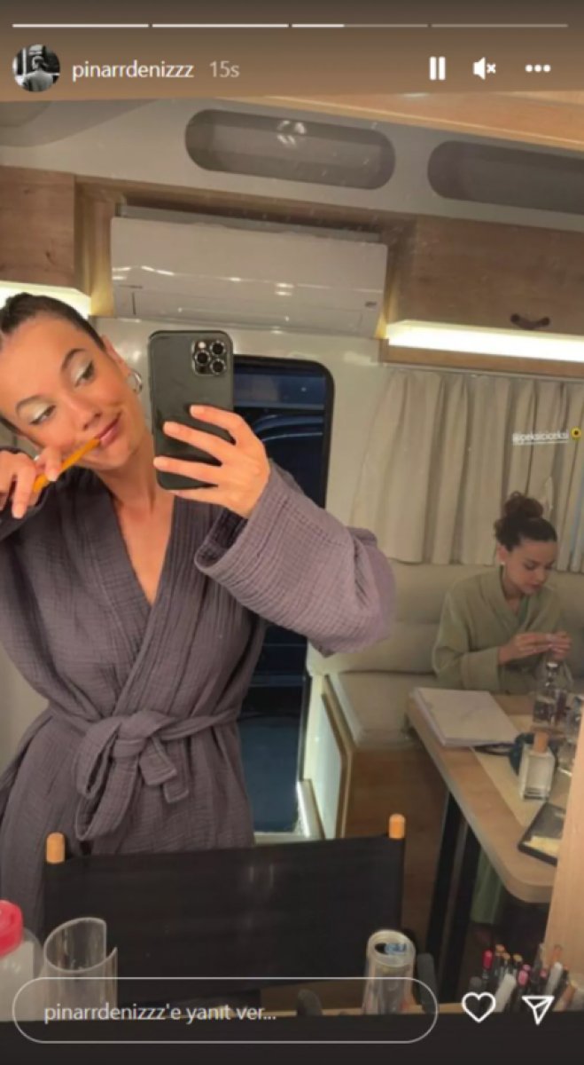 Ünlü isim sosyal medyada aktifliğine devam ederken, oyuncudan çok konuşulacak bir bornoz pozu geldi. Deniz, set arasında karavanda bornozuyla çekildiği fotoğrafı takipçileriyle paylaştı.