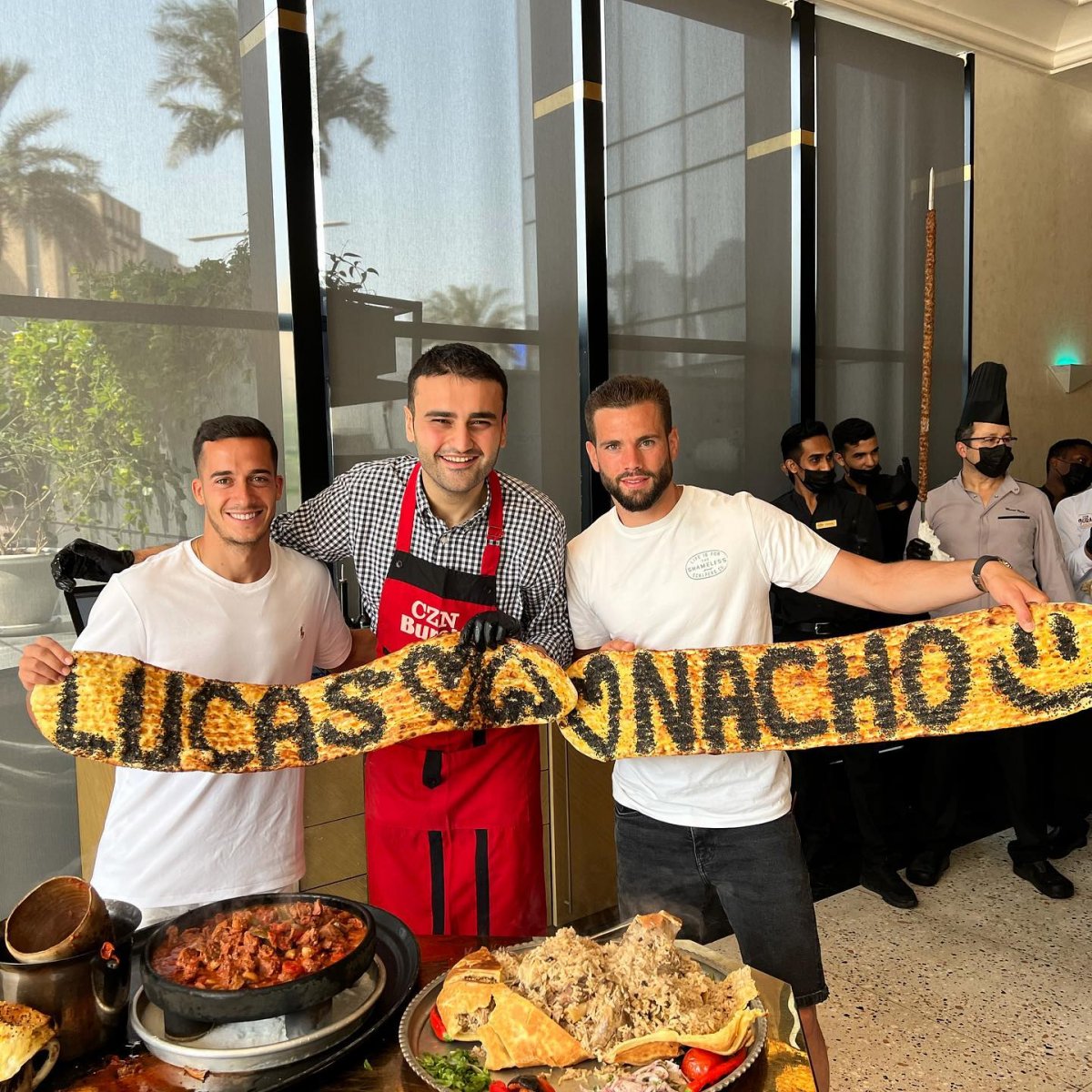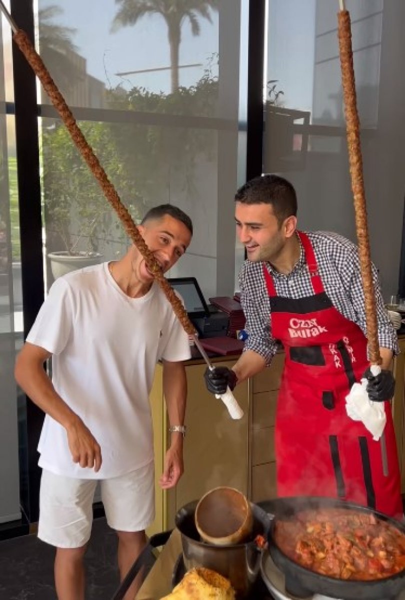 Önceki gün Nacho Fernandez Iglesias ve Lucas Vazquez’i ağırlayan Burak Özdemir, onlarla yemek yaptı, halay çekti.
