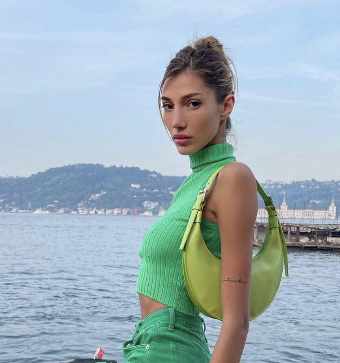 Tatil pozlarını takipçileriyle paylaşmayı ihmal etmeyen Şahin, incecik fiziğiyle ön plana çıkıyor.