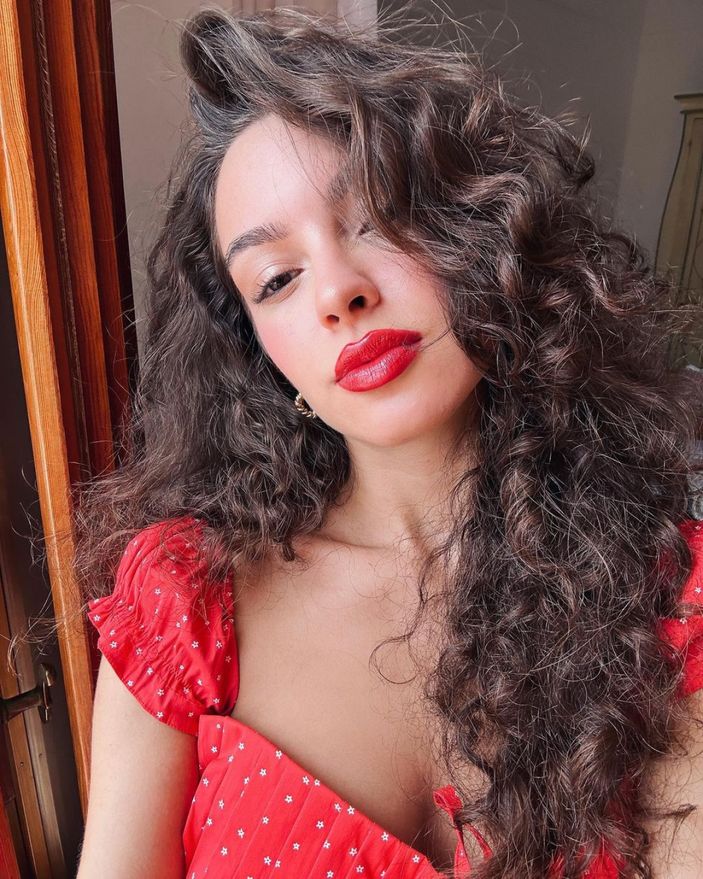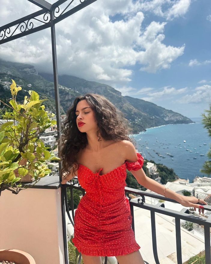 İtalya’ya giden Coşkun, kırmızı minisi ve rujuyla objektif karşısına geçti.