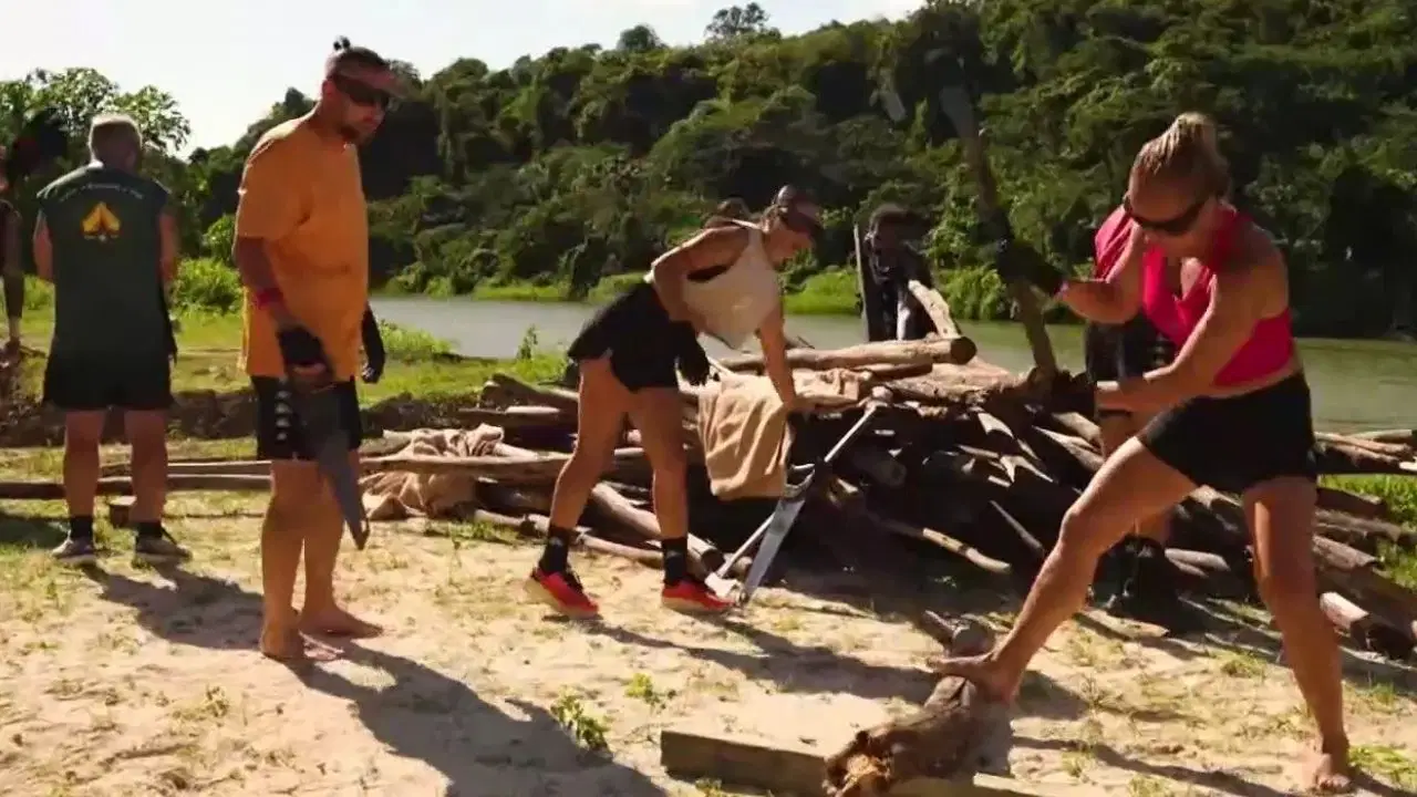 Ceza alan kırmızı takım, testere ve baltalarla odun kesti; kestikleri odunları çuvallara dolduran yarışmacılar hem eğlenceli hem de zorlu anlar yaşadı.