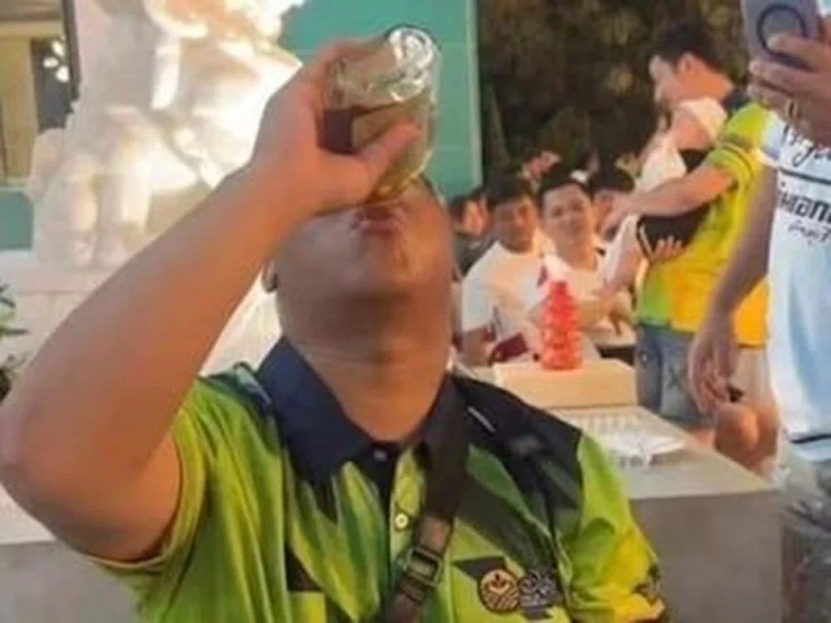 Sosyal medyada yayılan videolarda, Kanthee’nin 20 dakikada iki şişeyi bitirdiği ve meydan okuma sonrası fenalaşarak, bilincini kaybetti görüldü.