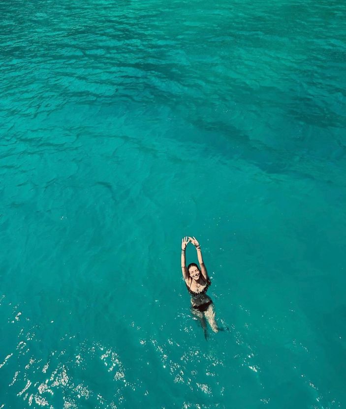Deniz, kum ve güneşin tadını çıkaran Deniz Baysal, tatil pozlarına bir yenisini daha ekledi. Ünlü oyuncu denizin üzerinde verdiği pozları Instagram hesabından yayınladı.