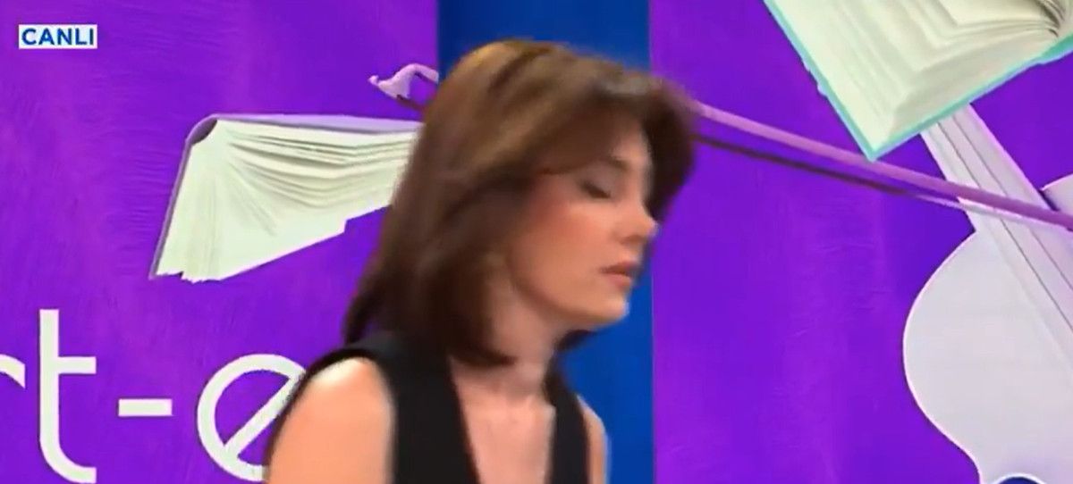 Neye uğradığını şaşıran sunucu, hemen yayının kesilmesini isteyerek araya gitti.