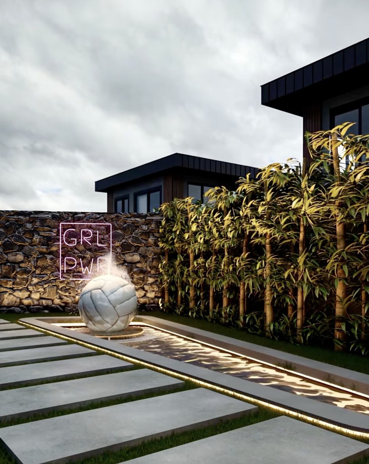 Evin sus havuzunda ise voleybol topu şeklinde bir heykel yer alacak.