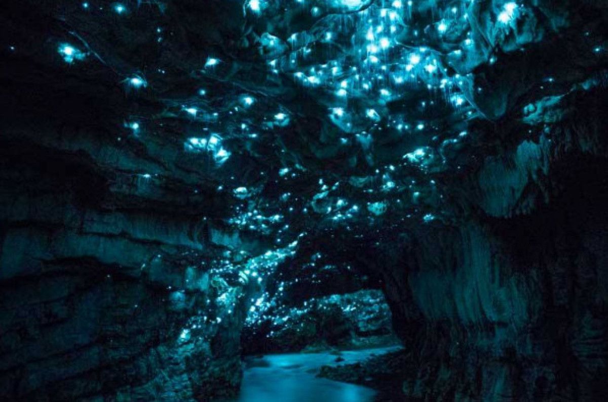 Waitomo Ateş Böceği Mağarası’nın en dikkat çekici yönü, yalnızca Yeni Zelanda’ya özgü olan ateş böceklerinin karanlık mağara tavanlarını yıldızlı bir gökyüzü gibi aydınlatması.