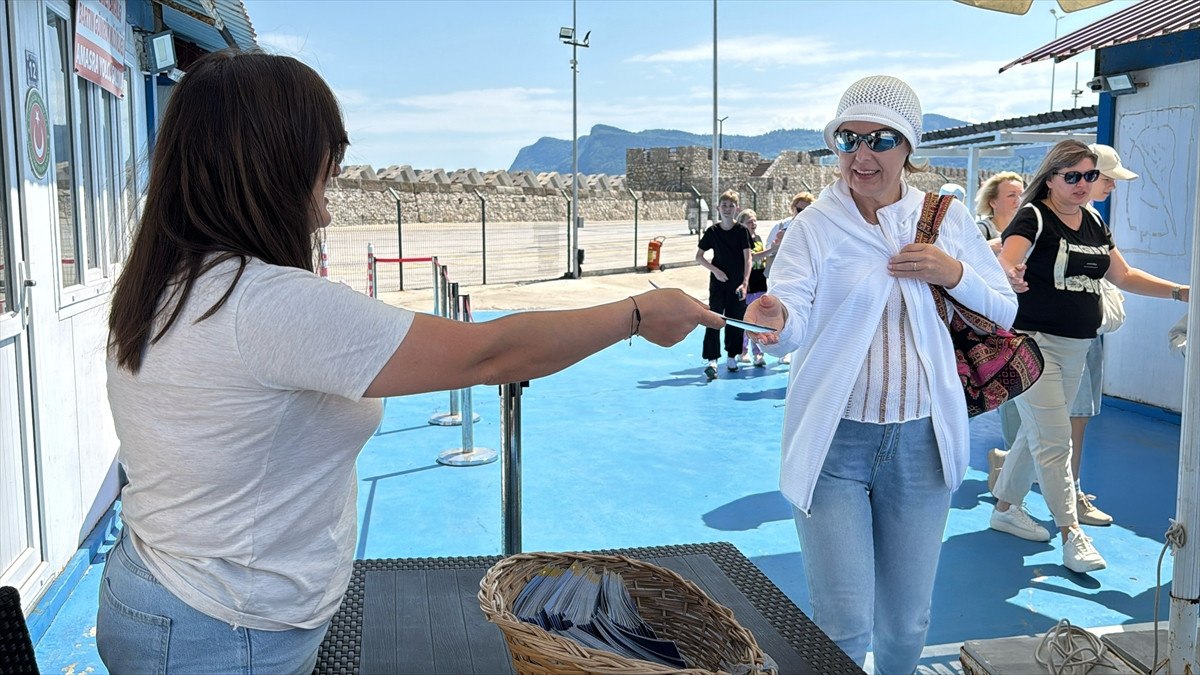 İlçeye giriş yapan turistlere, liman çıkışında Rusça broşürler verildi.