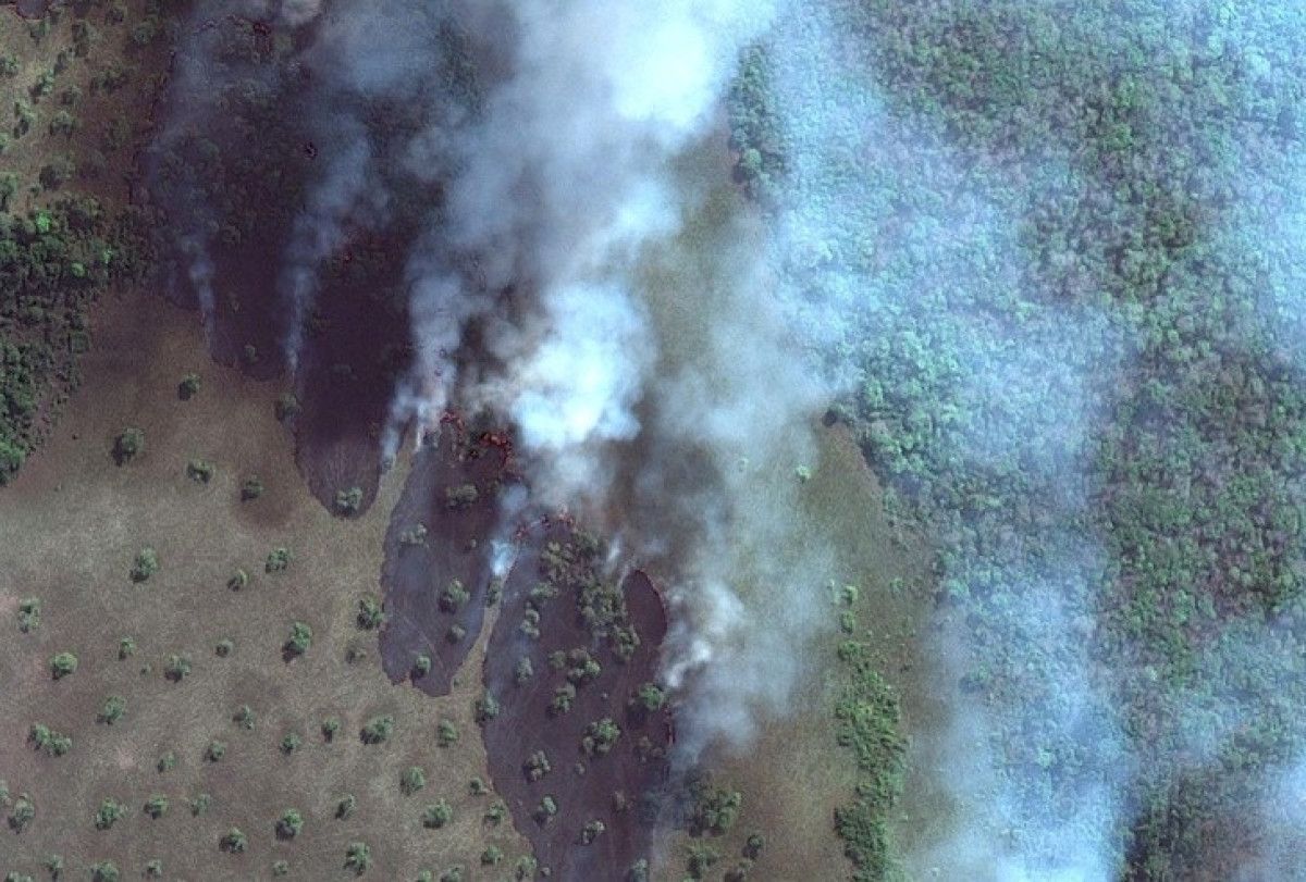 Uzaydan çekilen görüntülerde, kül ve dumanla kaplı orman alanları net bir şekilde seçiliyor.