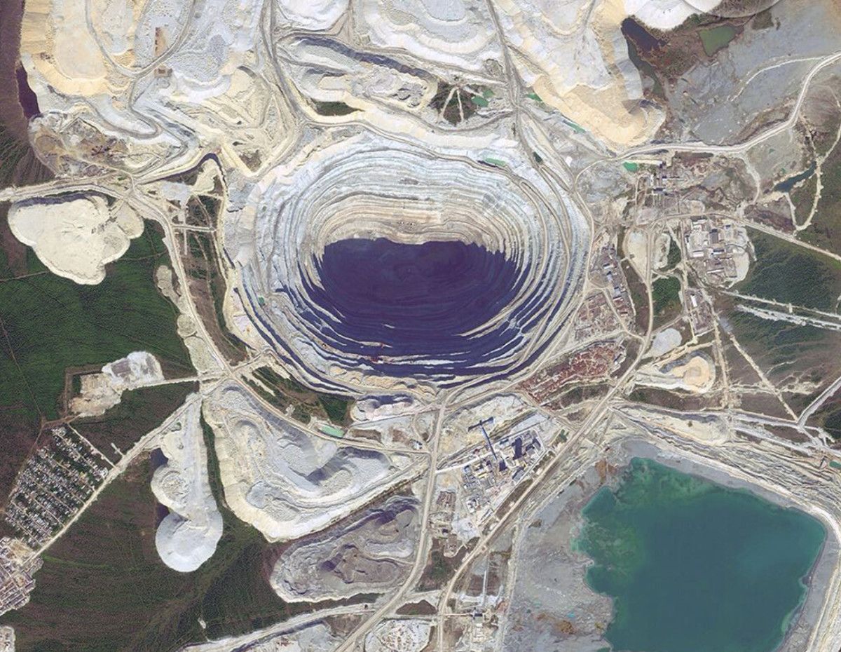 Yeryüzündeki bazı madencilik faaliyetleri, kilometrelerce büyüklüğünde açık alanlar açarak uzaydan gözle görülebilir hale geliyor.