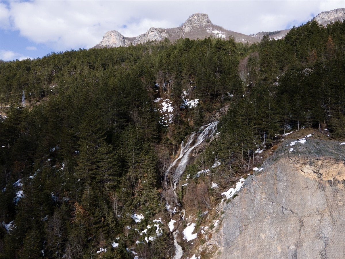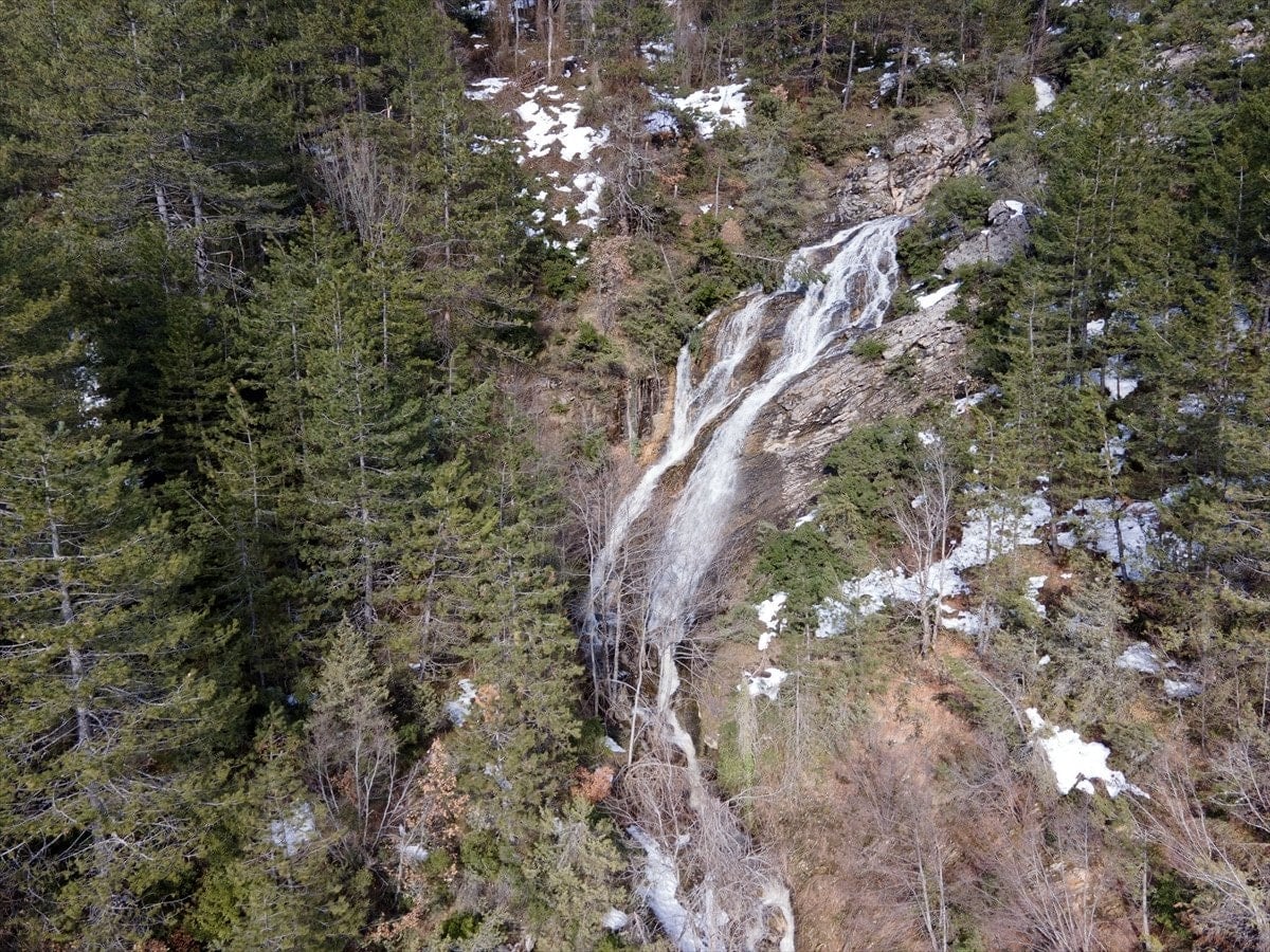 Kar şelalelerinin doğaya ayrı bir renk kattığını vurgulayan Keleş, dron çekimlerinde bölgede başka küçük şelalelerin de görülebildiğini ifade ederek, “Yaklaşık 12 metrelik bir yükseklikten dökülen suyun, yukarı kesimlerde de benzer oluşumlar meydana getirdiğini görüyoruz.” diye konuştu.