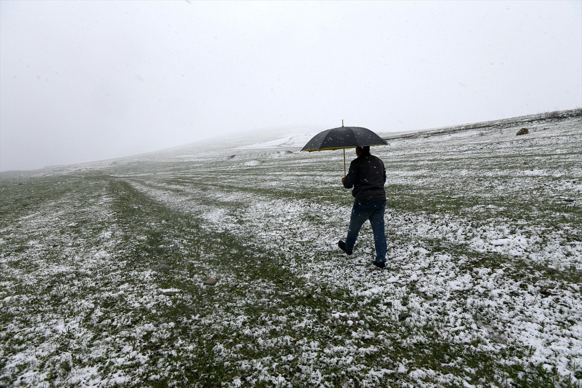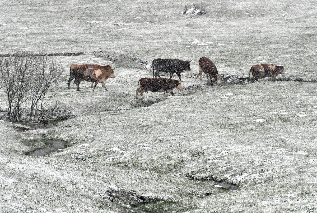 Benzer görüntüler Kars merkezine bağlı, 2 bin 344 metre rakıma sahip Boğatepe Geçidi’nde de yaşandı. Geçitteki çiçekler kar altında kalırken, doğa adeta yeniden kış uykusuna büründü.