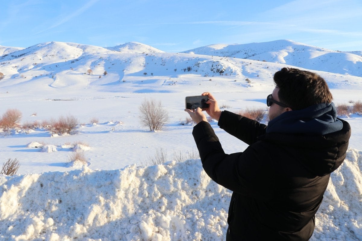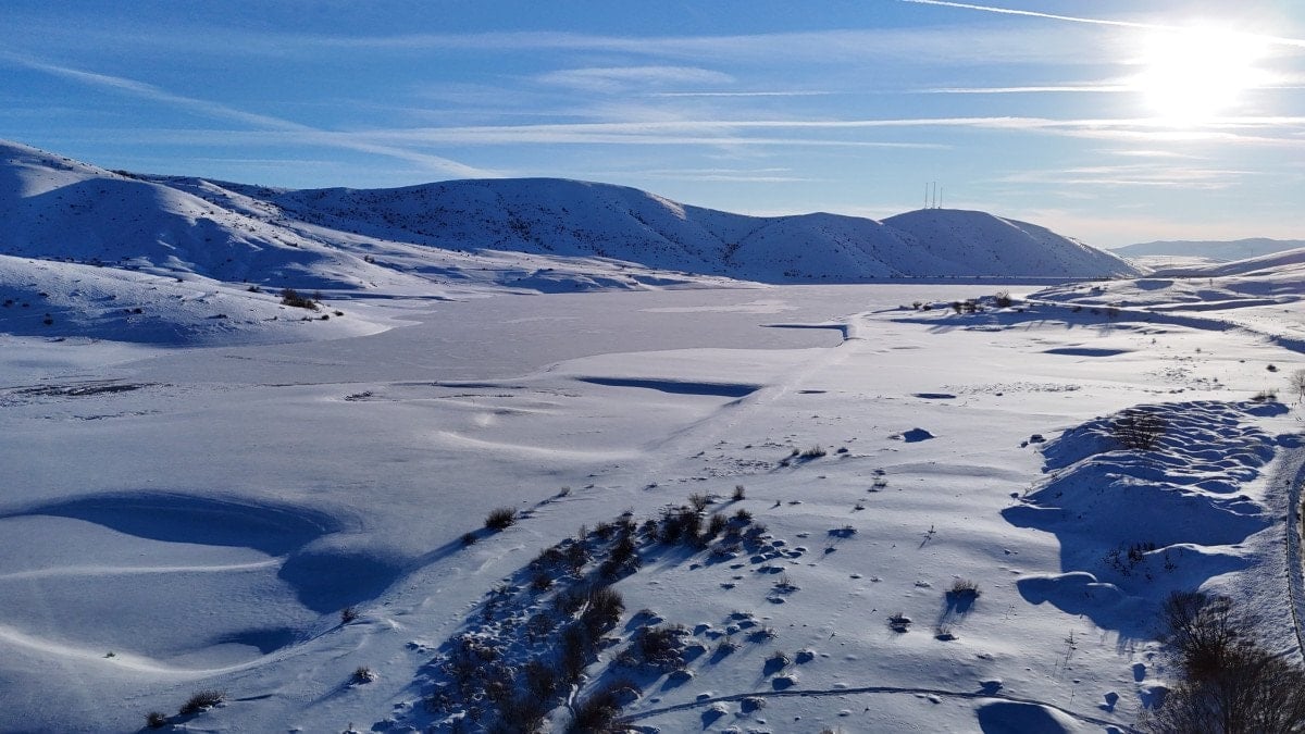 Kent merkezine yaklaşık 50 kilometre uzaklıkta, 2 bin 552 metre rakıma sahip Yıldız Dağı’nın güney yamacında bulunan gölet, çevresini saran dağ silsilesiyle birlikte görsel bir şölen sundu. Donan gölet, bölgenin sert kış koşullarını bir kez daha gözler önüne serdi.
