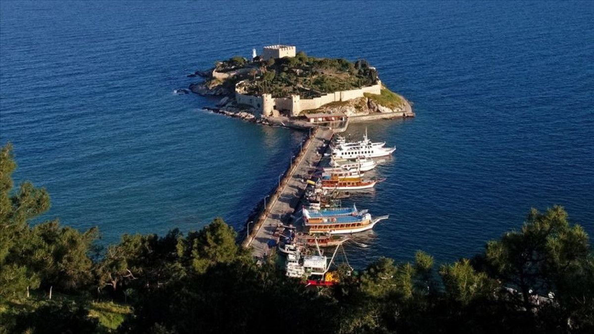 Kuşadası Körfezi’nin girişinde, limanı korumak amacıyla kurulan Güvercinada Kalesi, adını aldığı ada üzerinde yükseliyor.