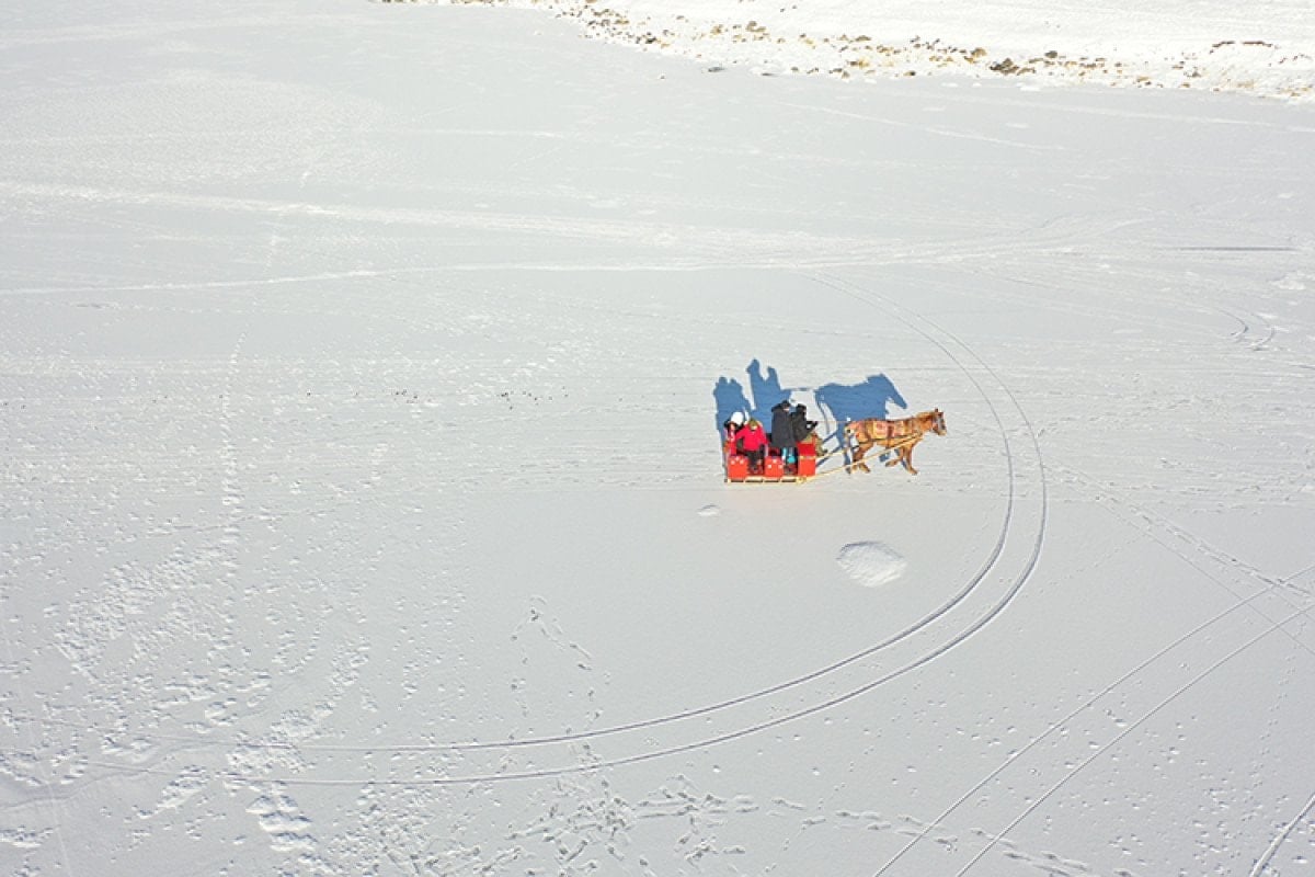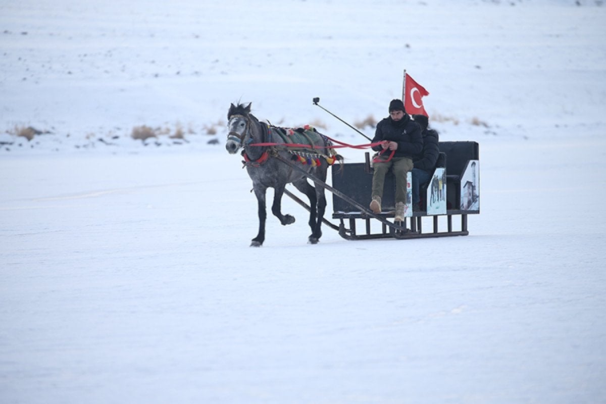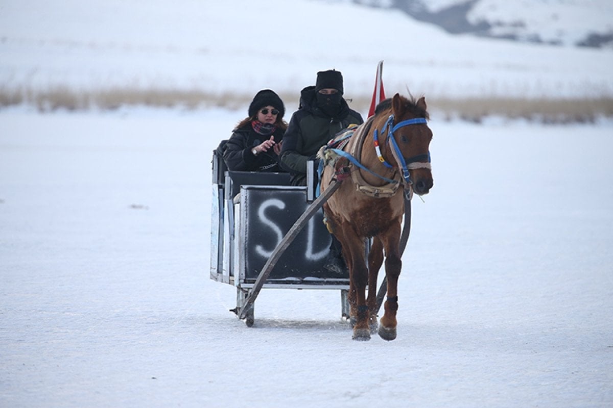 Turistik Doğu Ekspresi’nin seferlere başlamasıyla birlikte Çıldır Gölü’nü ziyaret eden ilk turistler, buzla kaplı gölde atlı kızak yaptı. Trenle bölgeye gelen yerli ve yabancı ziyaretçiler, göl üzerinde yürüyüş yaparak kışın tadını çıkardı.